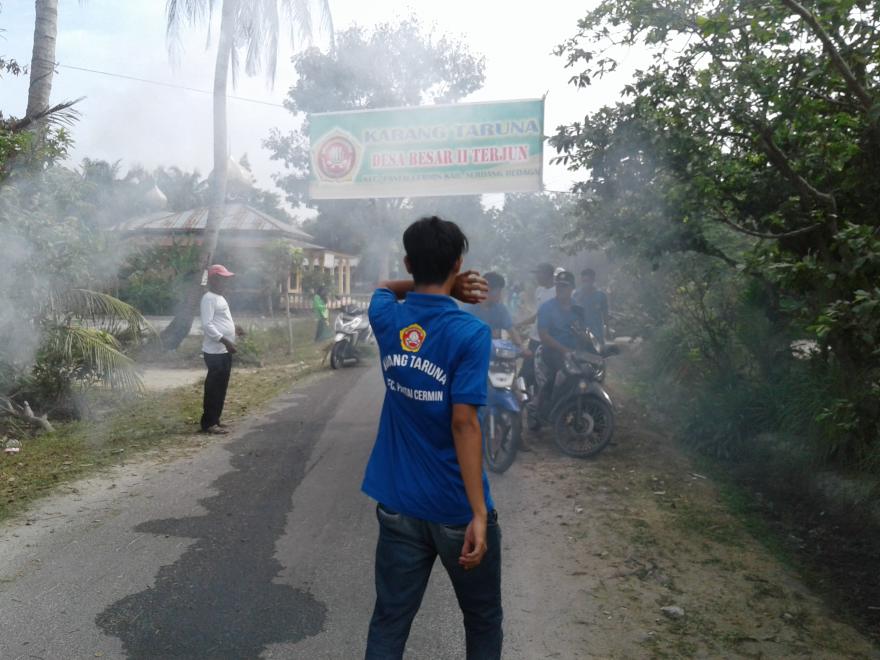 Sadar betul terhadap hal tersebut, anak-anak Karang Taruna Desa Besar II Terjun melakukan gotong royong bersama untuk membersihkan sepanjang jalan desa dengan tema “menyambut bulan ramadhan mari kita bersih-bersih”, Minggu (22/05).